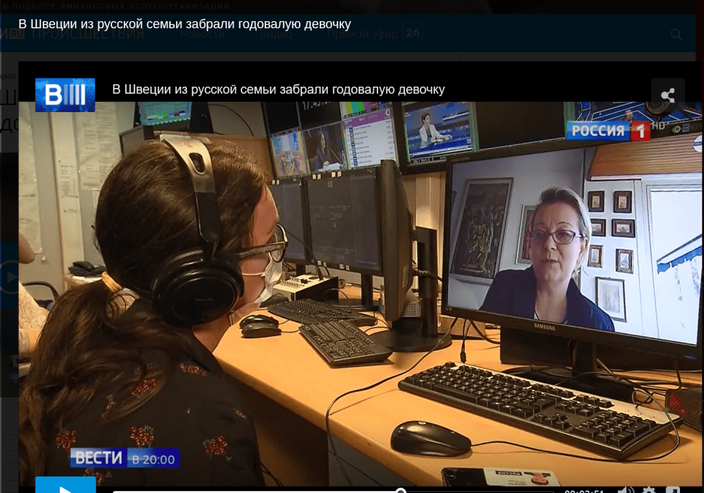 Intervista al notiziario della TV Rossia1 Vesti sul caso di una bimba di 1 anno sottratta ai genitori russi in Svezia.